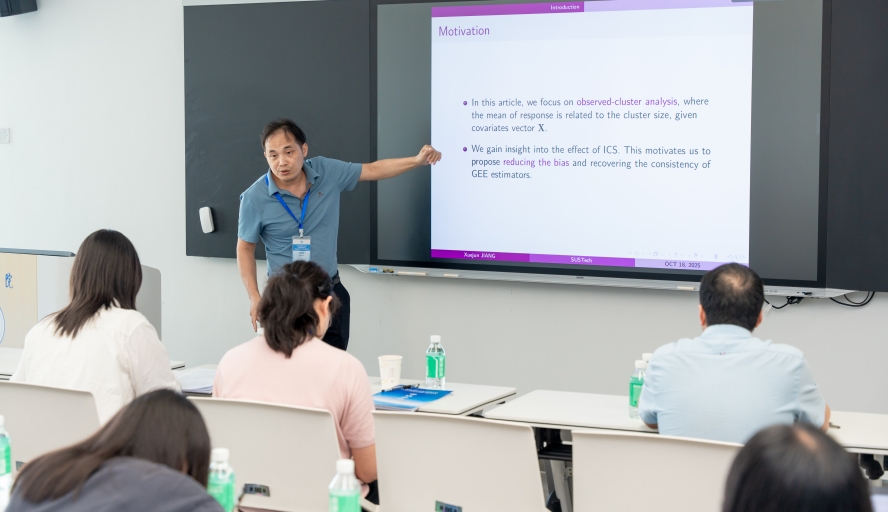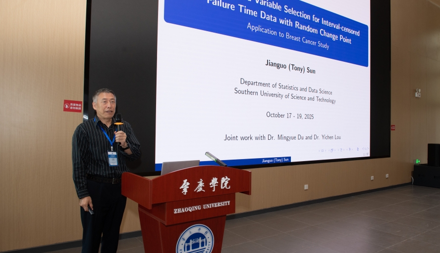 南方科技大学孙建国教授、云南大学朱文圣教授分别作了《Regression Analysis of Interval-Censored Failure Time Data with Random Change Point and Application to Breast Cancer Study》和《A Robust Covariate-Balancing Method for Estimating Individualized Treatment with Censored Data》的大会报告,并与参会学者进行了深入交流,现场反响热烈,学术氛围浓厚。大会设立了3个分会场,围绕多个前沿领域,呈现了20余场精彩纷呈的分组报告。参会学者一致认为,本次会议不仅学术氛围浓厚、内容丰富多样,还提供了难得的交流和展示平台。